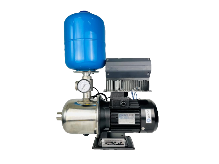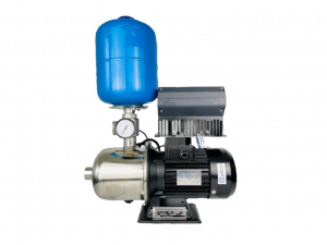 Насосная установка HCM на базе горизонтального многоступенчатого насоса c проточной частью из нержавеющей стали AISI 304 в комплектации с контроллером PD SS/PD ES, мембранным баком объемом 3 л, 5-ходовым штуцером со встроенным обратным клапаном, манометром и датчиком давления.