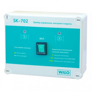 При срабатывании контакта WSK/SSM насос отключается, а его индикатор мигает сериями по 2 вспышке каждые 3 секунды. Автоматически включается резервный насос.